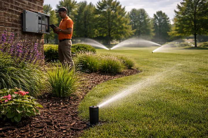 Irrigation system monitoring, seasonal adjustments, and performance checks designed to support healthy turf, efficient water use, and reliable coverage across managed properties.