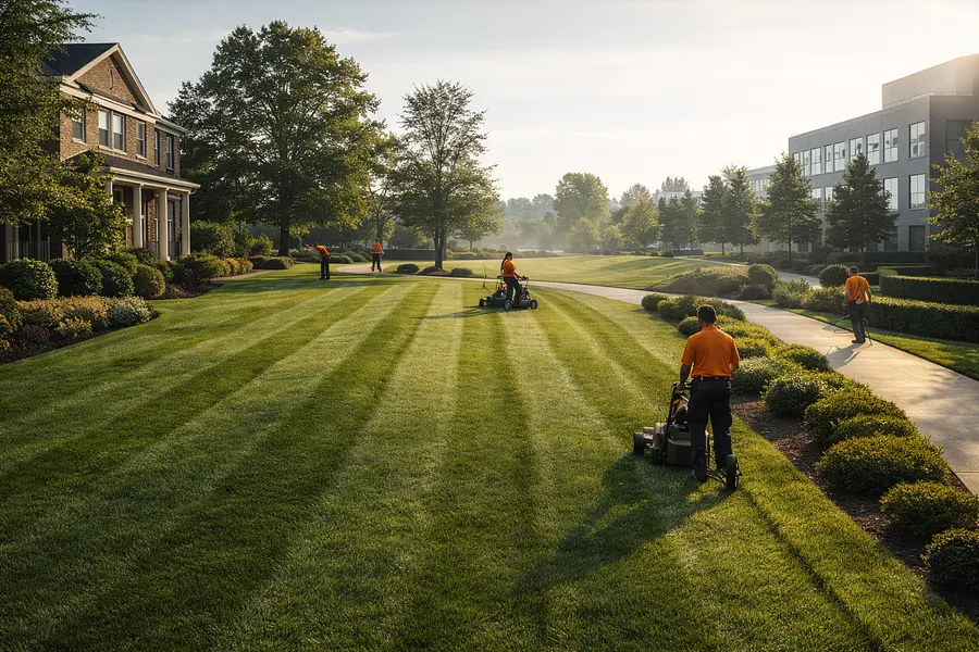 Scheduled mowing and edging performed as part of a recurring maintenance plan to maintain turf health and appearance.