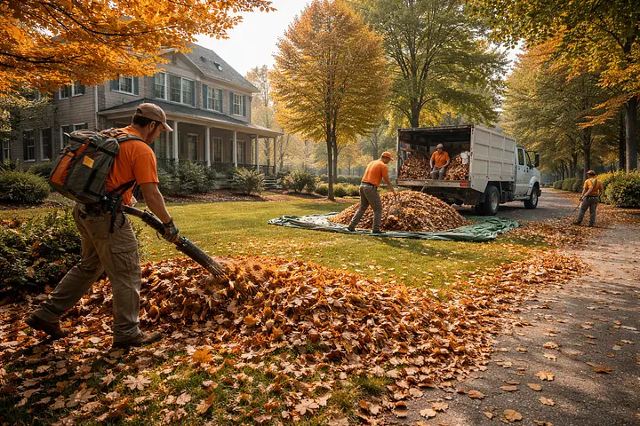 Planned leaf removal services to protect turf, prevent buildup, and maintain safe site conditions.